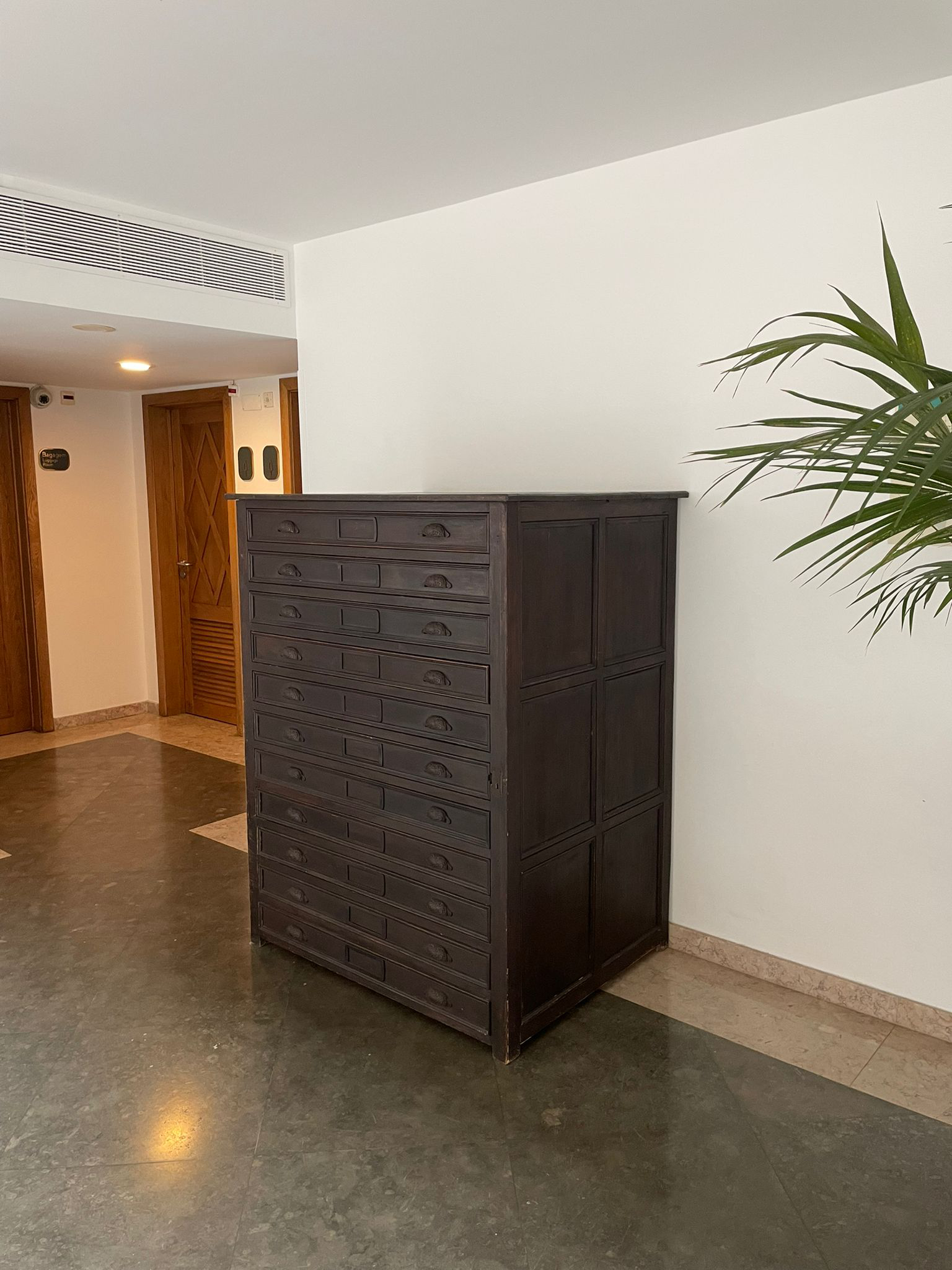 Este aparador de madeira é perfeito para quem procura organização sem abrir mão do estilo. Com várias gavetas, oferece espaço suficiente para guardar tudo, desde documentos a acessórios. O design robusto e a cor escura conferem um toque clássico a qualquer ambiente. Ideal para hall de entrada ou sala de estar, este móvel não só é funcional, como também se destaca na decoração, ajudando a manter tudo arrumado e ao seu alcance.