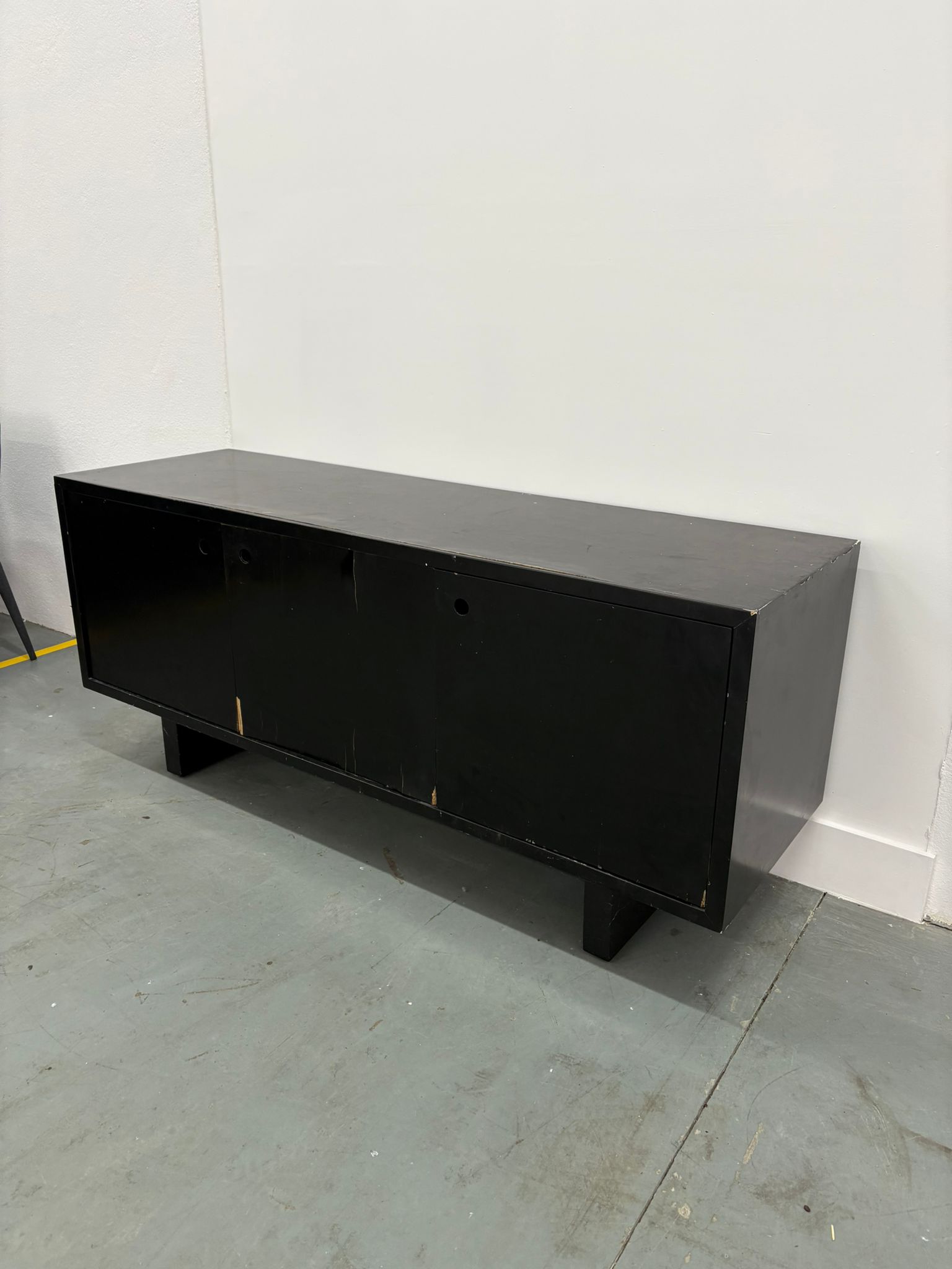 A precisar de uma pintura, este aparador moderno em preto combina estilo e funcionalidade, ideal para diversos espaços da casa. Fabricado em madeira, oferece um design minimalista com duas portas que garantem armazenamento eficiente. É perfeito para a sala de estar ou corredor, proporcionando uma superfície elegante para exibir objetos decorativos. A sua cor neutra permite que se integre facilmente em diferentes estilos de decoração, desde o contemporâneo ao vintage. A sua estrutura robusta garante durabilidade e resistência ao uso diário.