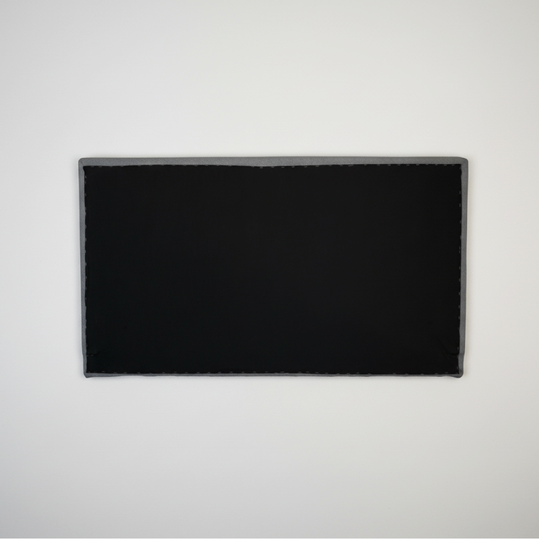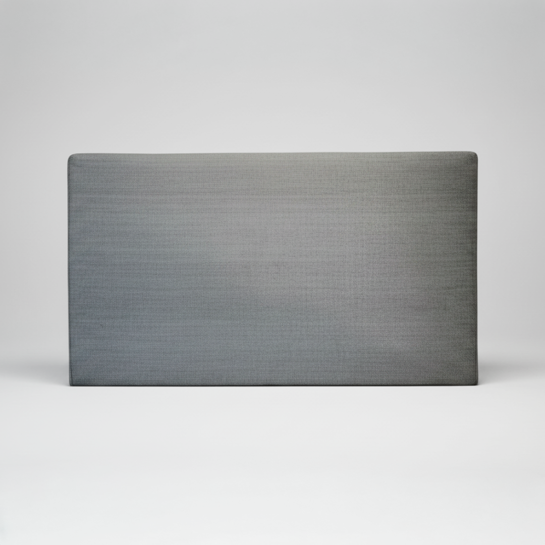 Cabeceira de cama com estrutura rígida e revestimento integral em tecido técnico de cor azul. Apresenta um design retangular de linhas simples e superfície lisa, ideal para fixação à parede ou acoplamento ao sommier. Por ser um artigo proveniente de hotelaria, pode apresentar algum pós de uso decorrente do armazenamento, mas o material limpa-se facilmente com produtos adequados para estofos.