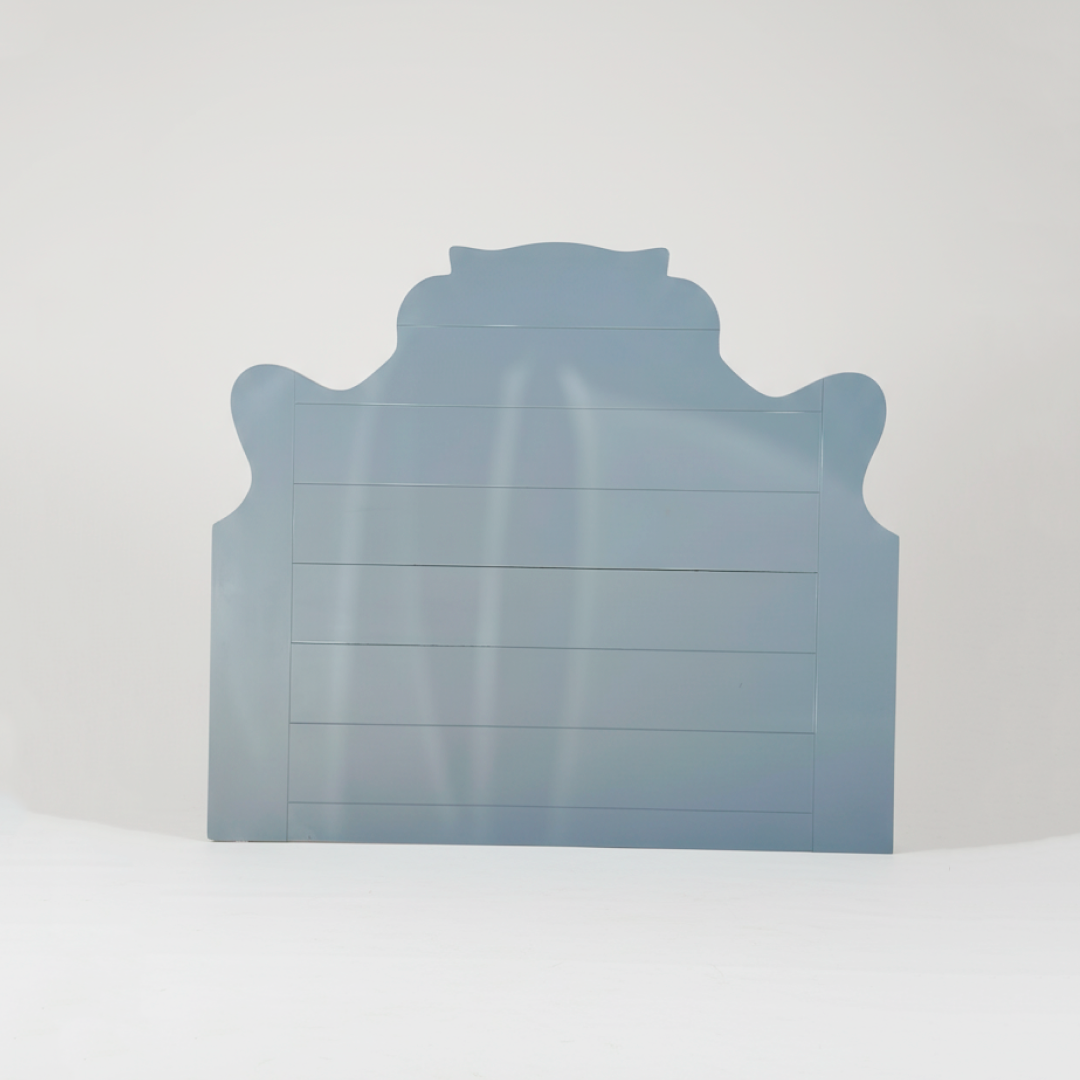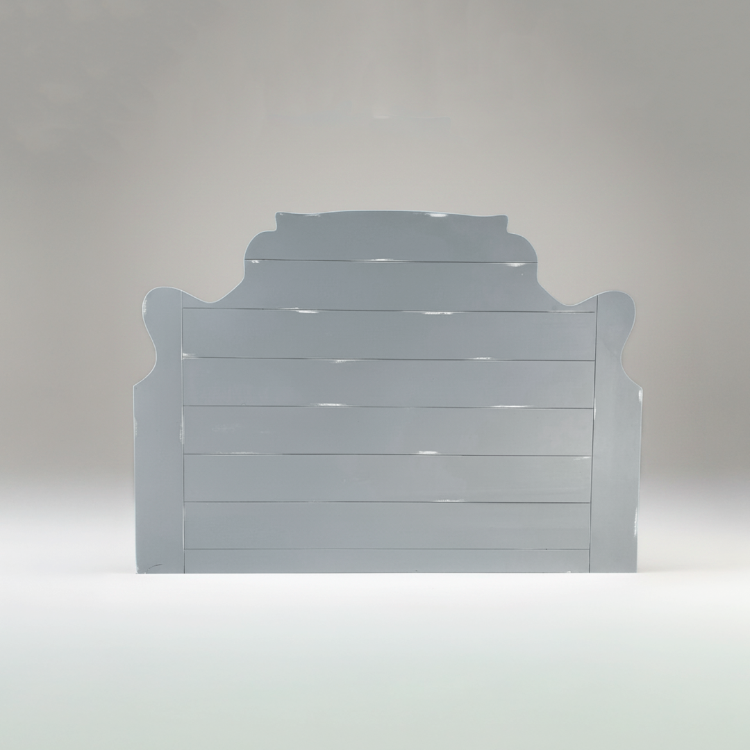Cabeceira em madeira pintada de branco, com linhas suaves e recorte clássico.