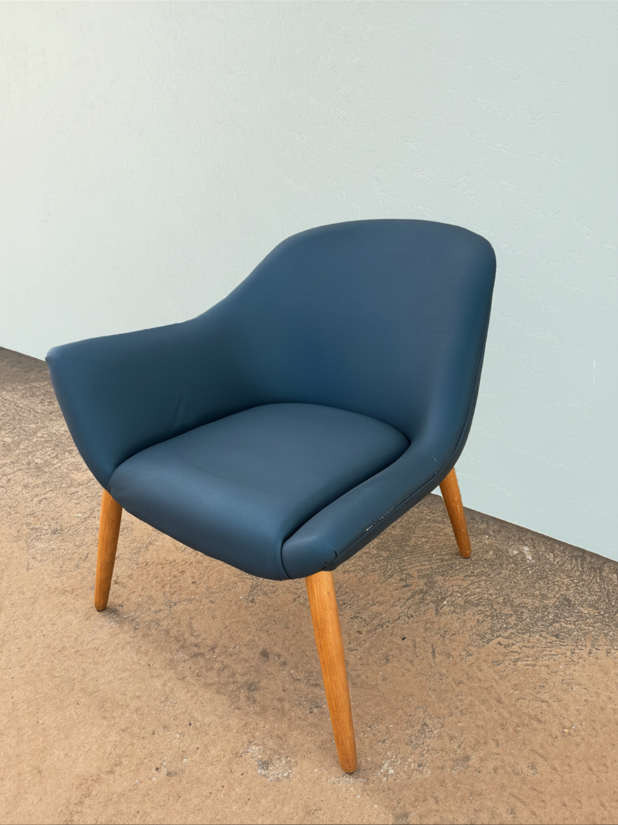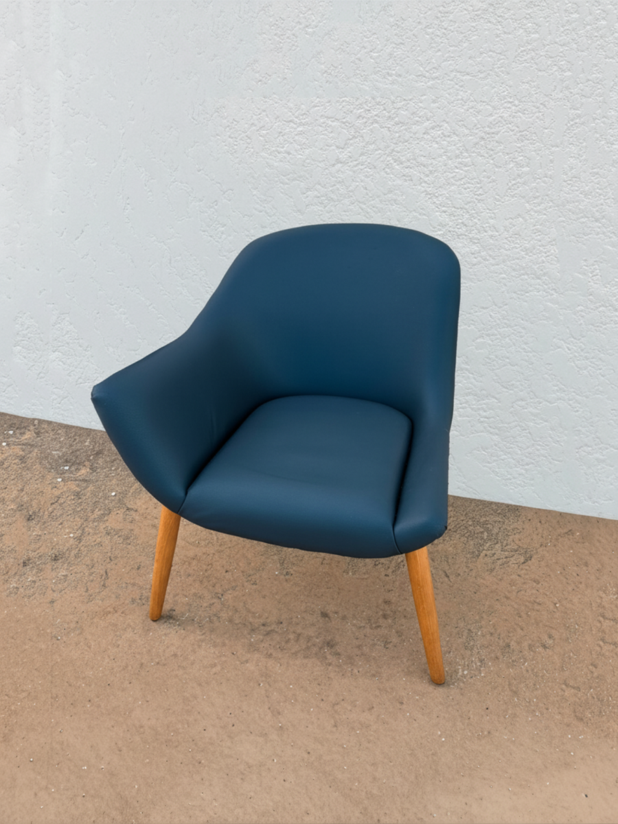 Esta cadeira em eco-pele azul com braço à direita oferece design ergonómico e funcionalidade, perfeita para uso diário em escritórios, lounges ou em casa. O estofamento azul escuro é resistente, fácil de limpar e confortável, enquanto a estrutura e as pernas em madeira garantem estabilidade e estilo. Uma peça versátil que une conforto e durabilidade.