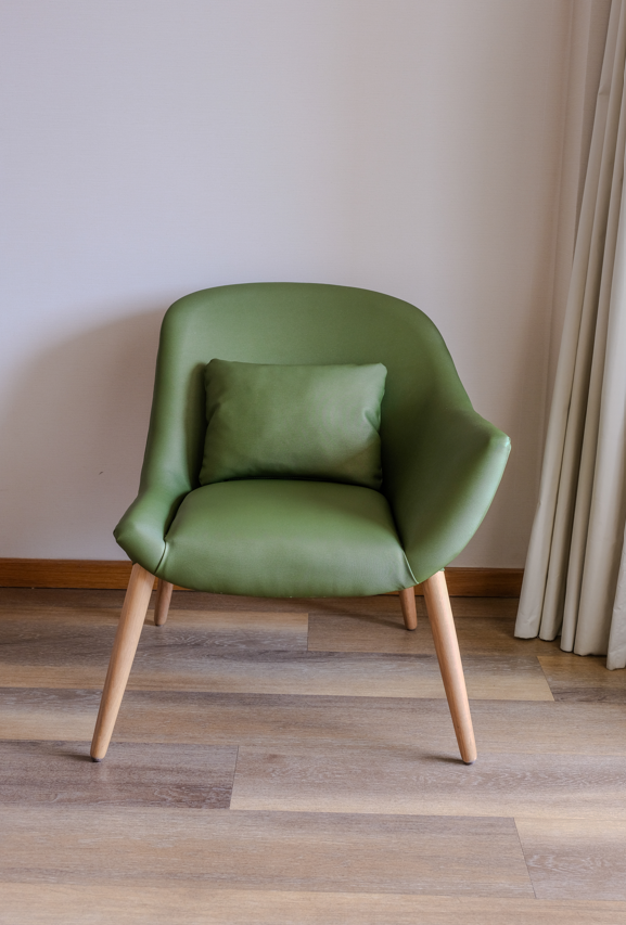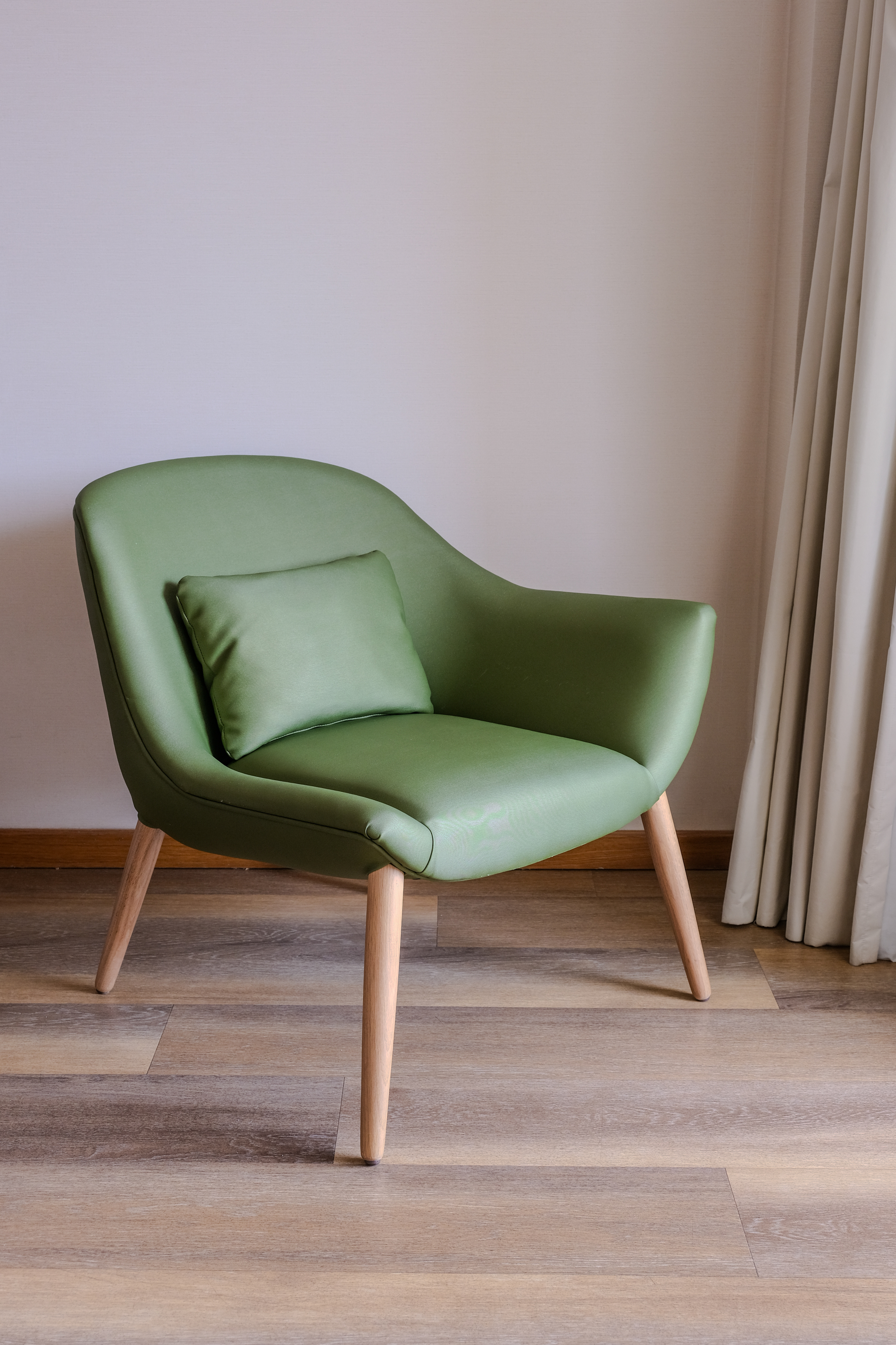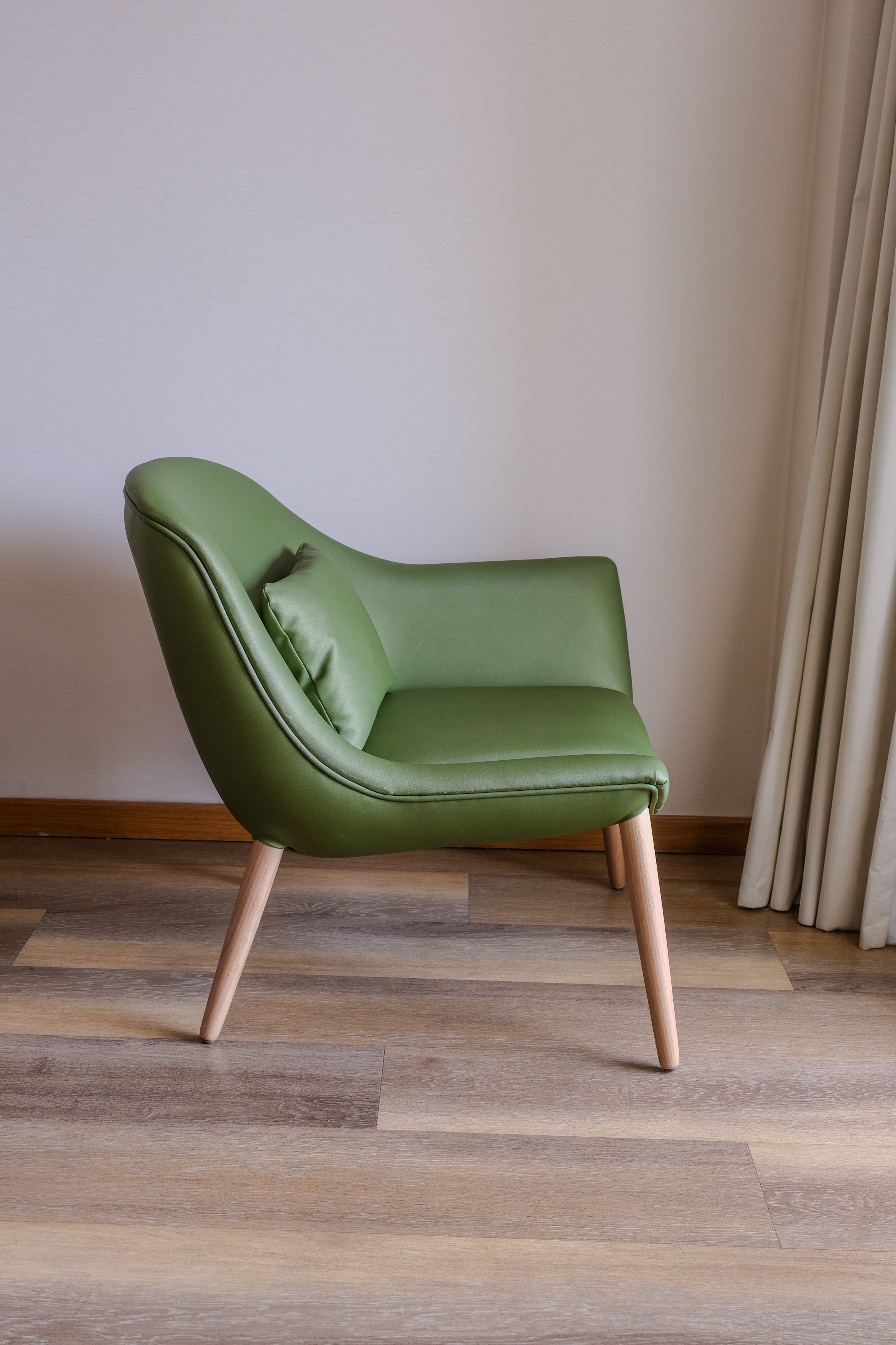 Elegante e confortável, esta cadeira estofada é ideal para quartos, salas de estar, espaços de hotelaria ou escritórios com design contemporâneo.