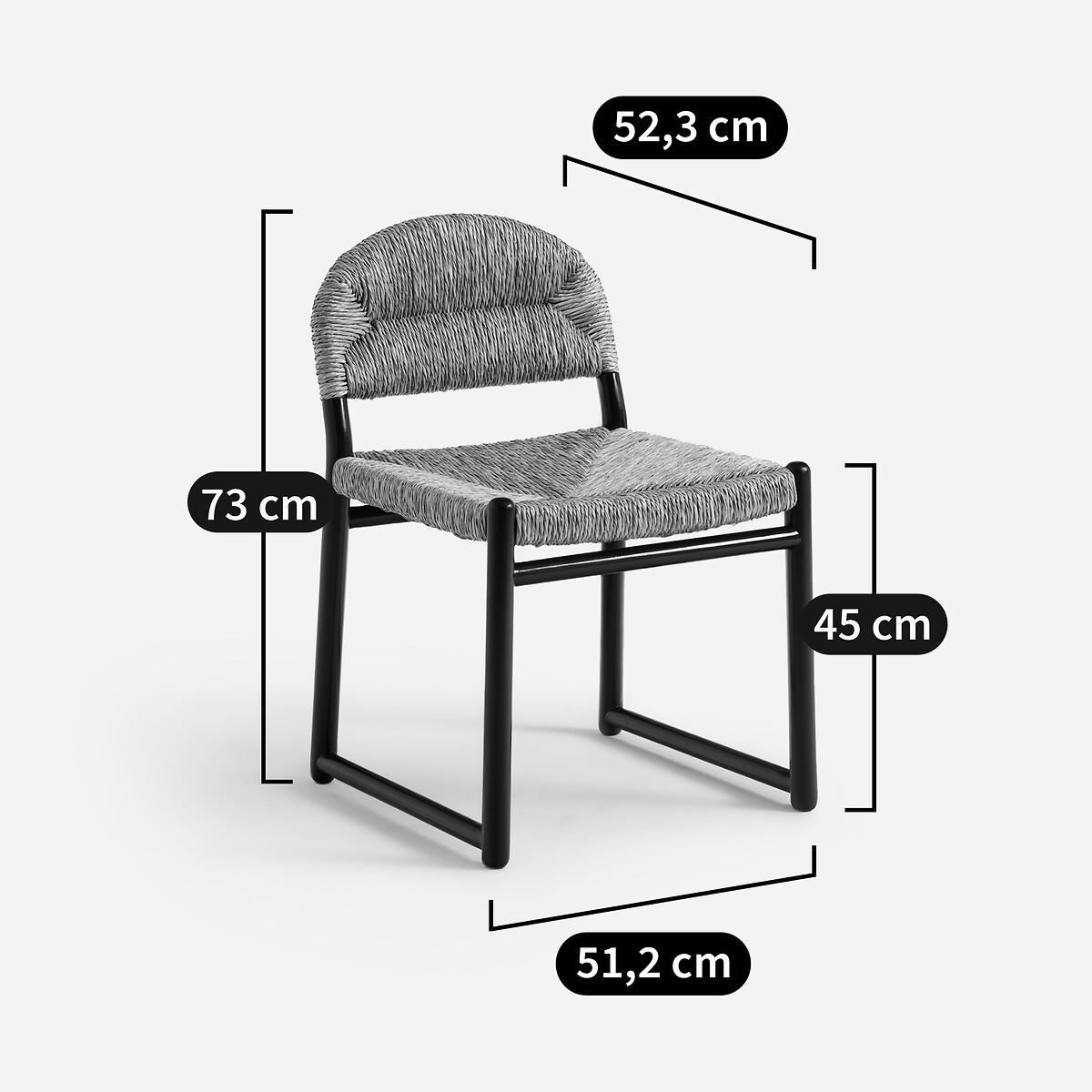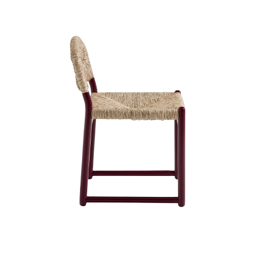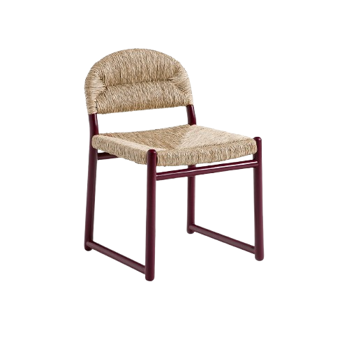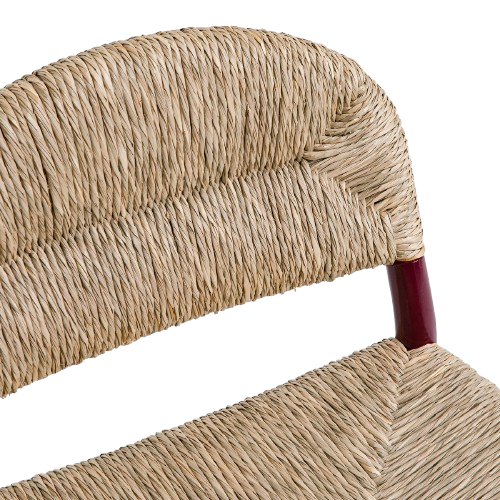 Cadeira com estrutura em carvalho maciço pintado. Madeira com certificação FSC®. O artigo apresenta acabamento lacado brilhante, verniz de poliuretano. O assento e encosto apresenta-se em palha natural entrelaçada à mão.