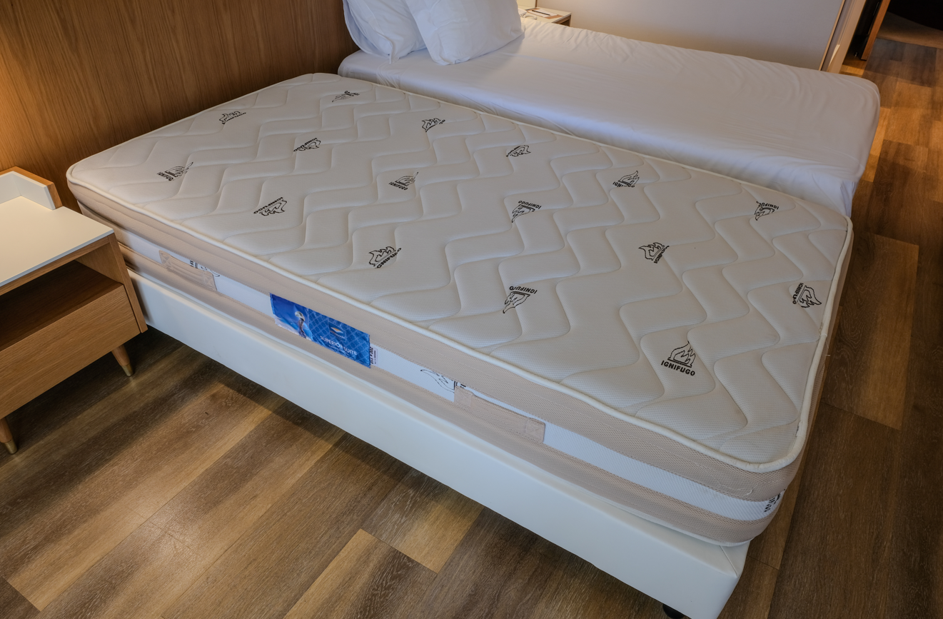 Colchão de alta densidade com tratamento ignífugo, ideal para hotéis, alojamentos locais ou uso residencial com exigência de segurança. Oferece conforto firme e longa durabilidade, mantendo-se em excelente estado ( pouco uso, comprados em 2020 durante o COVID)