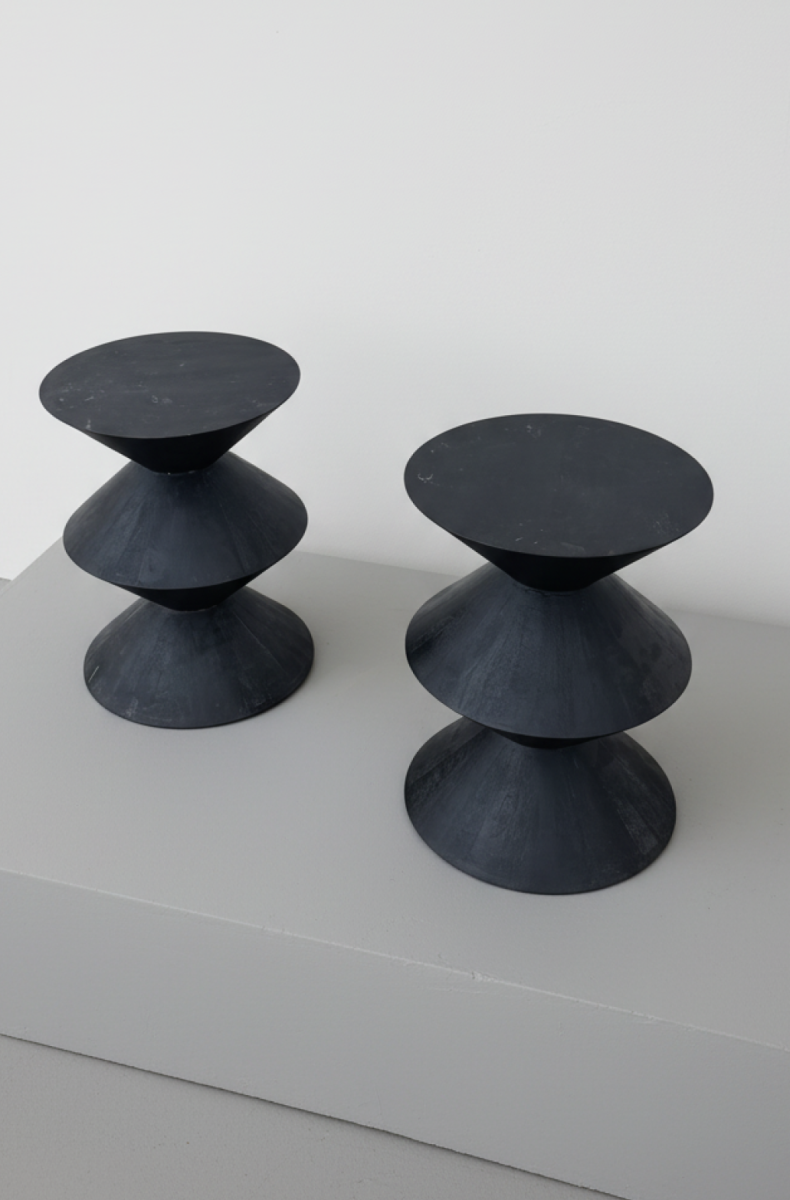 Mesa de apoio com design escultural e linhas geométricas marcantes, ideal para quartos, zonas lounge ou projetos de decoração moderna.