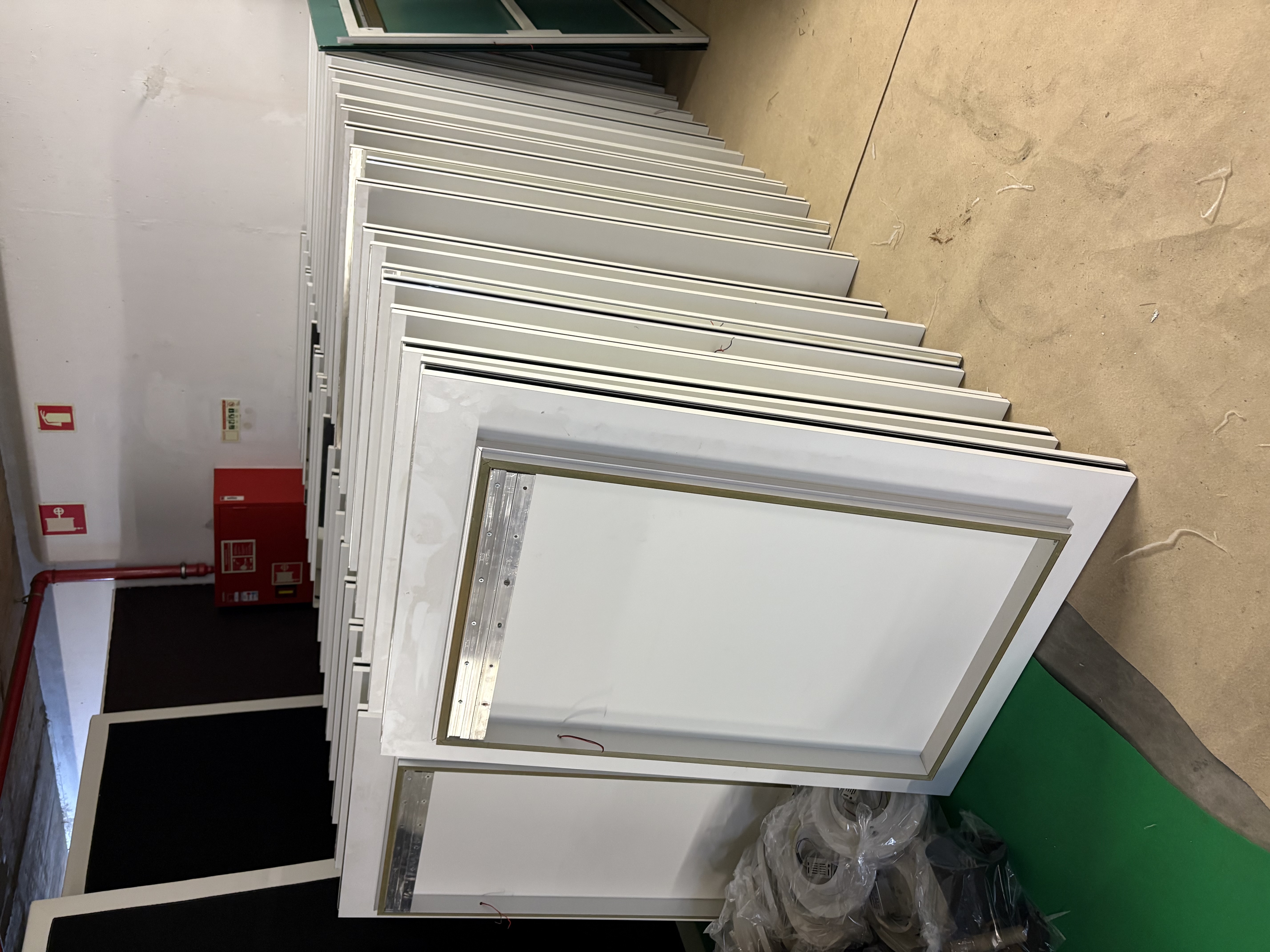 O espelho não inclui transformador, mas encontra-se com toda a instalação elétrica preparada, facilitando a integração num novo espaço.