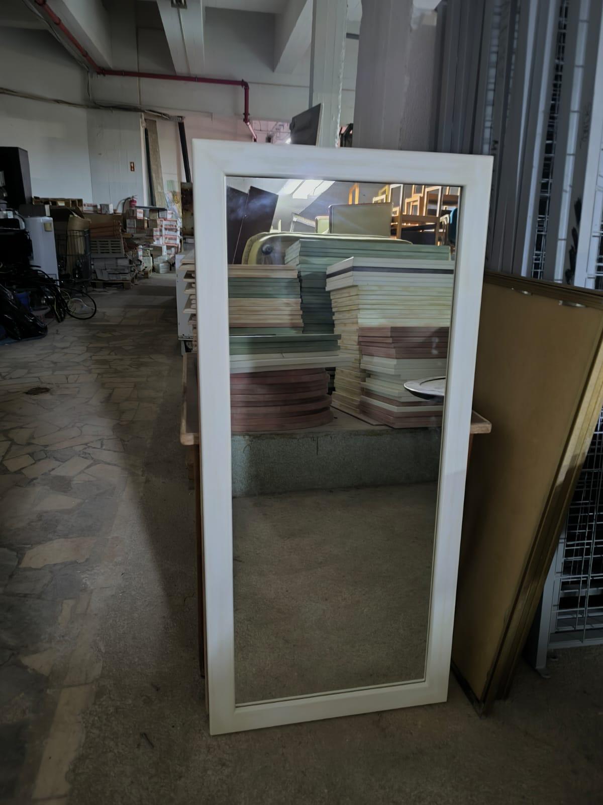 Espelho retangular grande, para montar na parede.