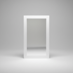 Espelho retangular com moldura branca lacada. Design minimalista e intemporal, ideal para ampliar a luminosidade e complementar espaços modernos ou neutros.