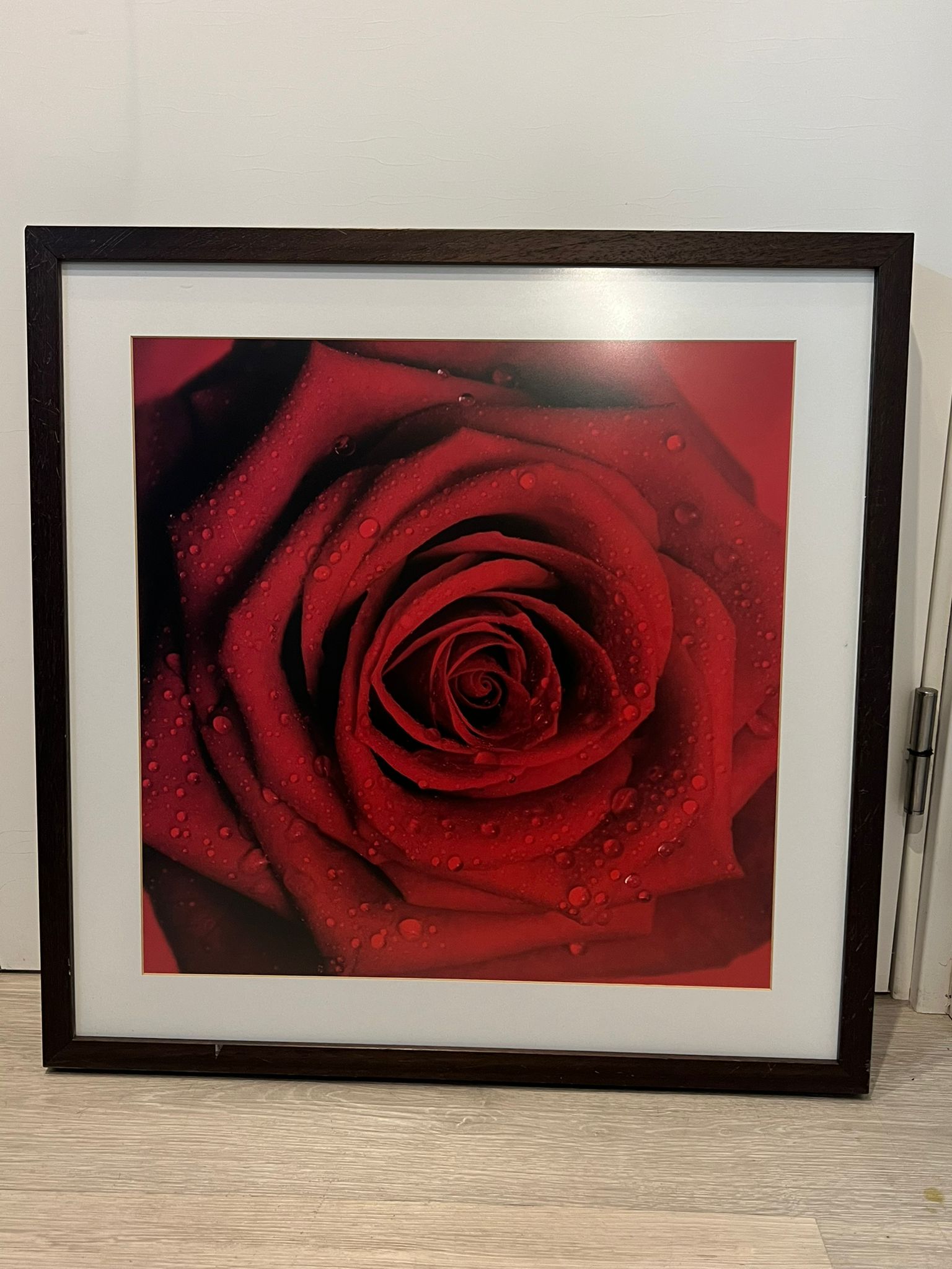 Fotografia a cores com composição floral em tons vermelhos. Emoldurada com moldura escura e passe-partout claro, ideal para dar destaque a espaços modernos e acolhedores.