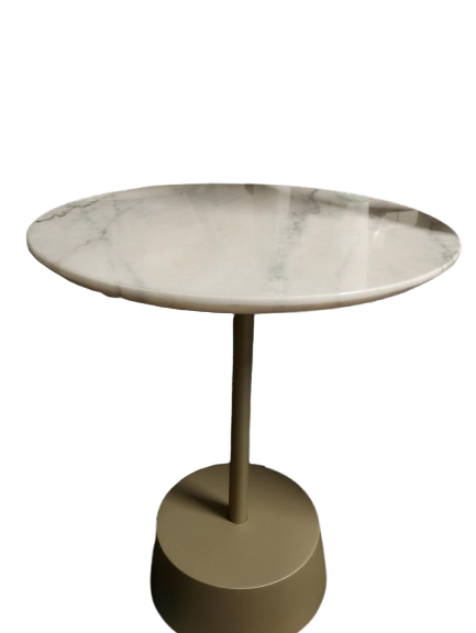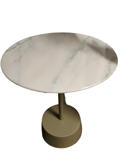 Mesa de apoio em excelente estado. Estrutura em metal com acabamento cor champanhe meio brilho e tampo mármore.