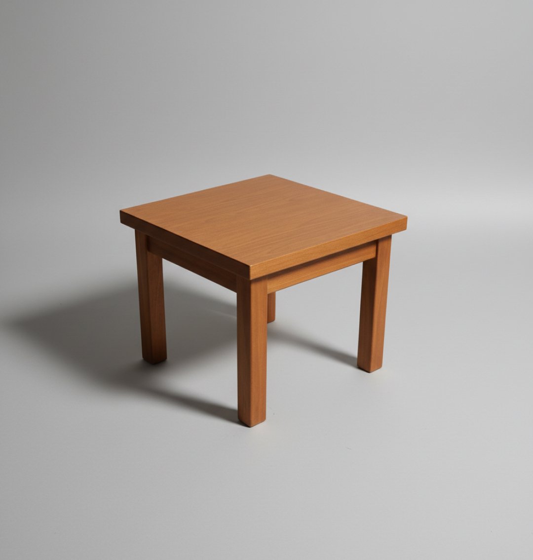 Esta mesa de apoio destaca-se pelo seu design sólido e funcional, com uma estética intemporal que se adapta a diversos estilos de decoração, desde o rústico ao contemporâneo. Construída com uma estrutura robusta em madeira de tom médio, apresenta um tampo quadrado de superfície generosa e pernas de corte reto que garantem máxima estabilidade. É a peça ideal para servir de suporte lateral numa sala de estar ou como mesa de apoio em espaços de leitura.