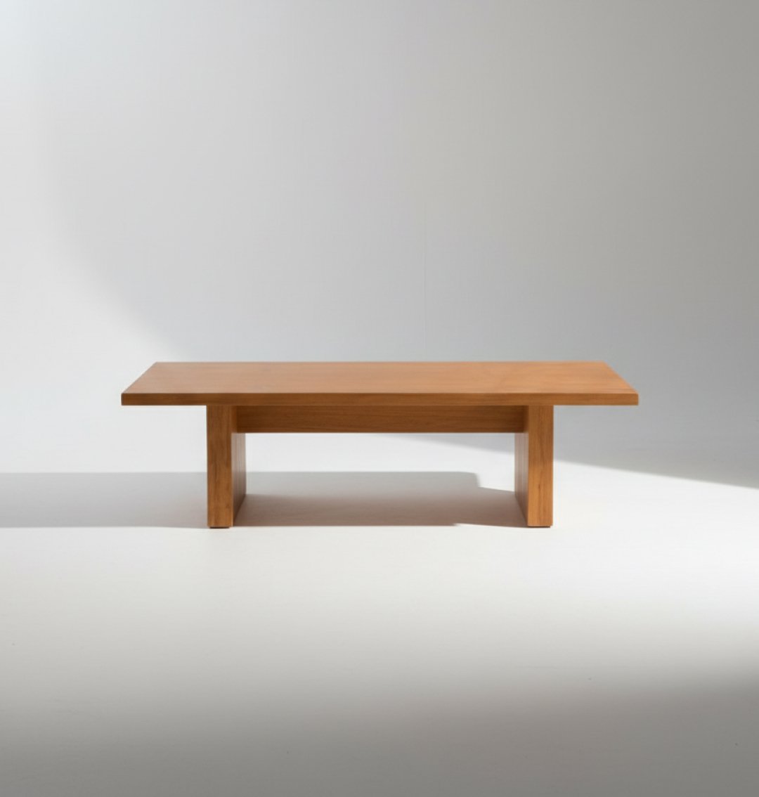Esta mesa de centro retangular em madeira é a peça ideal para quem procura um design robusto e uma presença marcante na sala de estar. Com um acabamento em tom mel/carvalho e uma estrutura de base fechada (em vez das tradicionais quatro pernas), esta peça oferece uma estética sólida e moderna, perfeita para ambientes que privilegiam materiais naturais e linhas diretas.