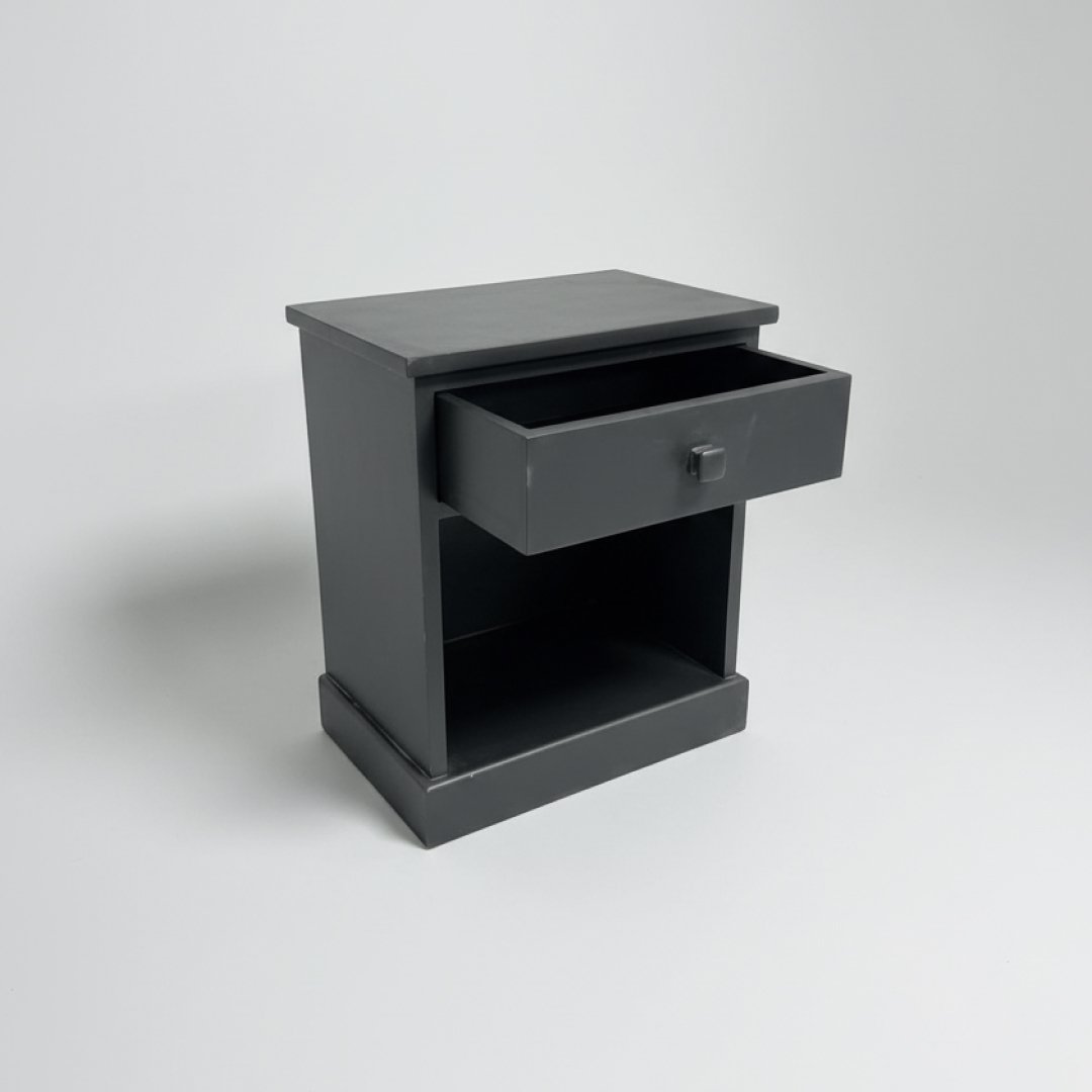Material/Acabamento: madeira pintado num tom cinzento-escuro.