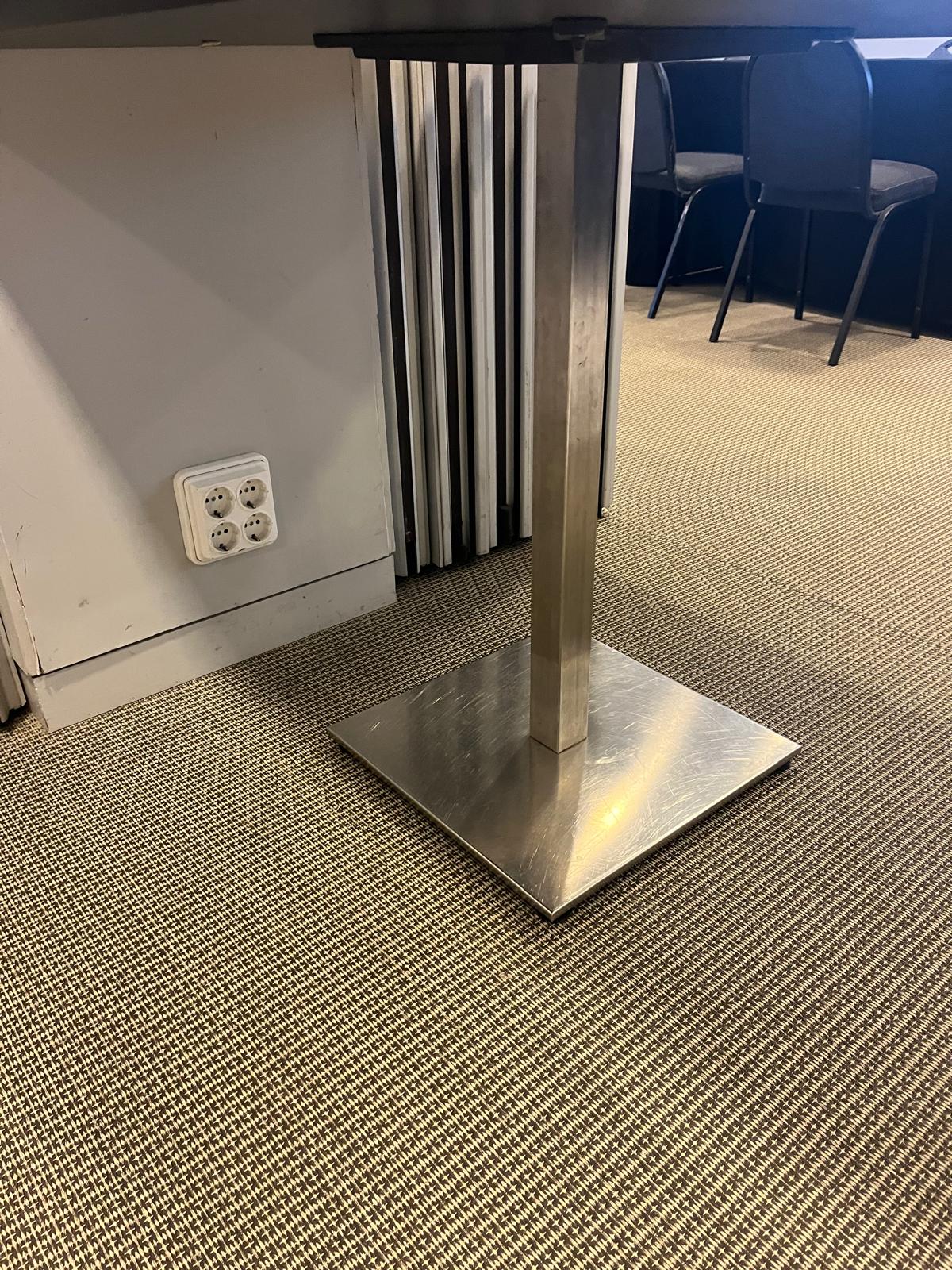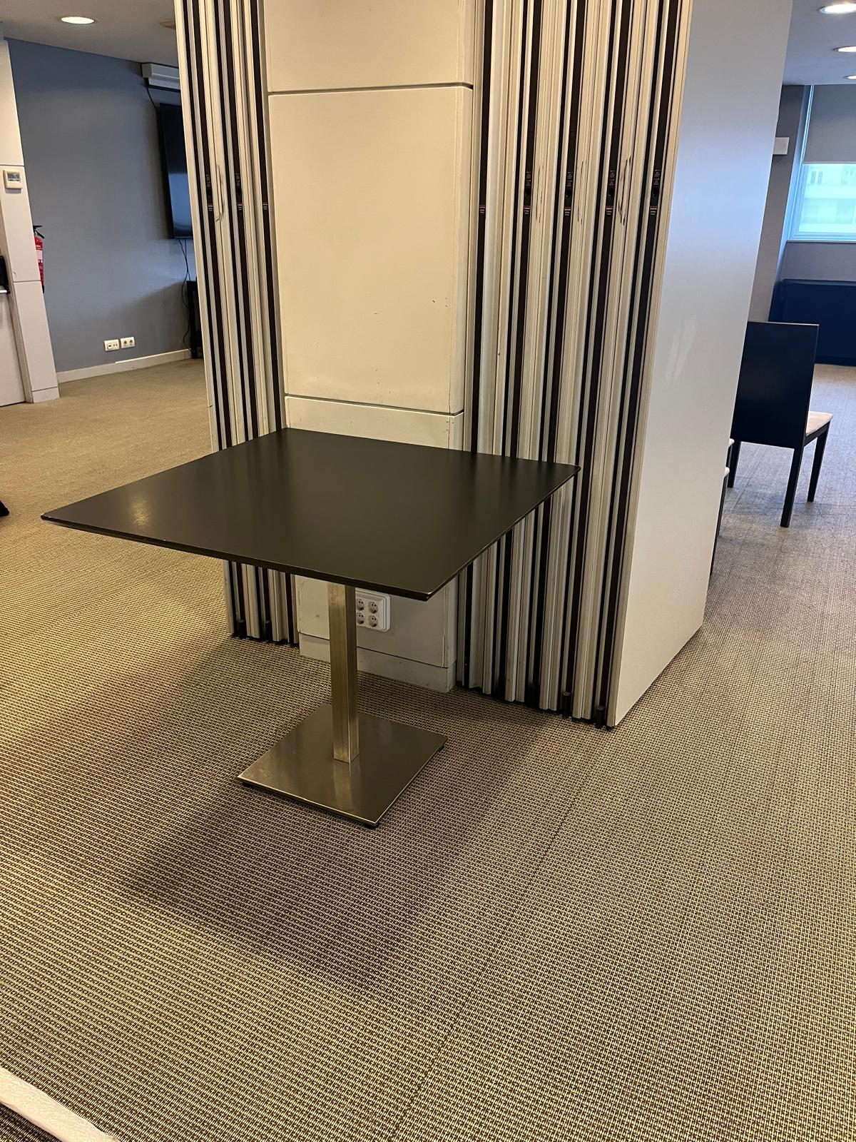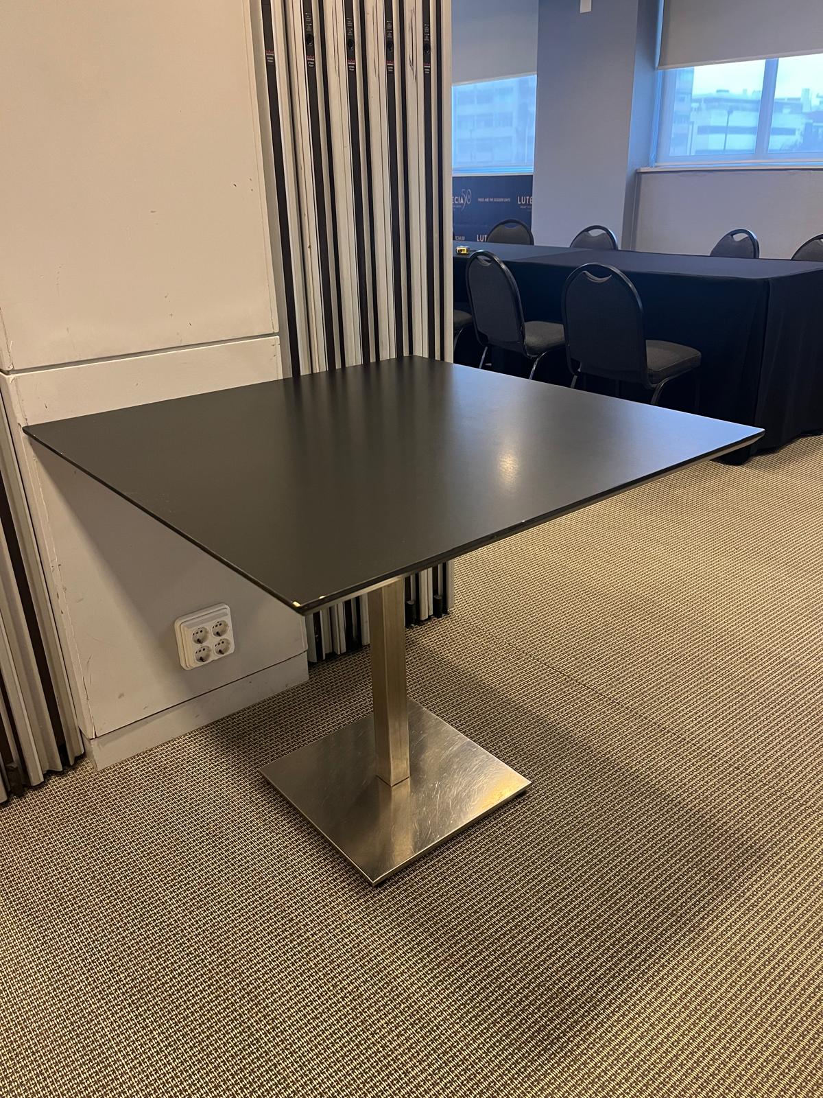 Mesa com tampo quadrado em madeira lacada a preto combinado com base central metálica
