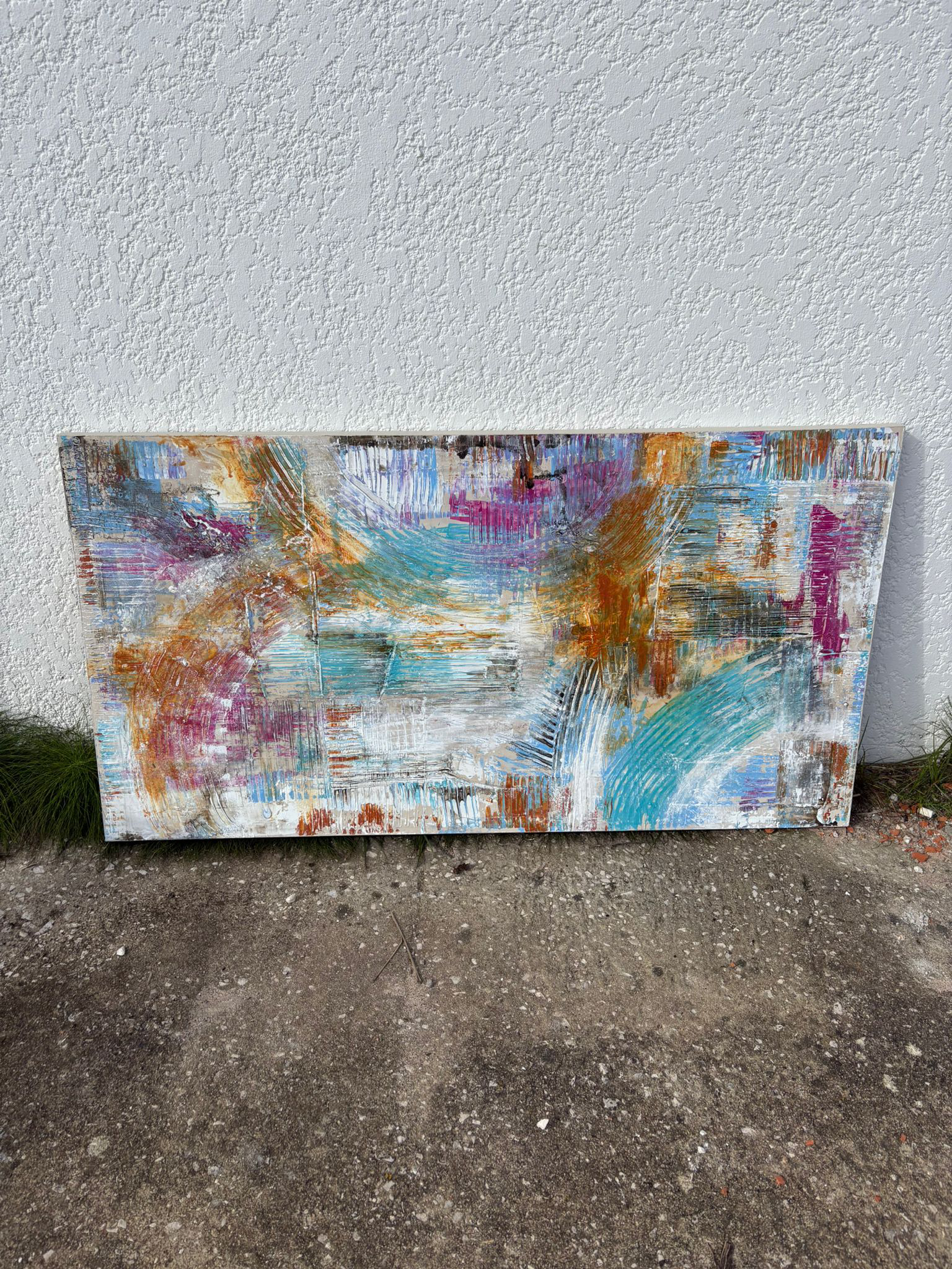 Este painel artístico apresenta uma combinação vibrante de cores e texturas, ideal para decorar espaços internos. Feito de madeira, é um ótimo complemento para salas de estar, quartos ou escritórios, proporcionando um toque contemporâneo e criativo. A sua palete diversificada de tons faz dele uma peça de destaque, atraindo a atenção sem sobrecarregar o ambiente. Perfeito tanto para amantes da arte quanto para quem busca uma decoração única e expressiva.