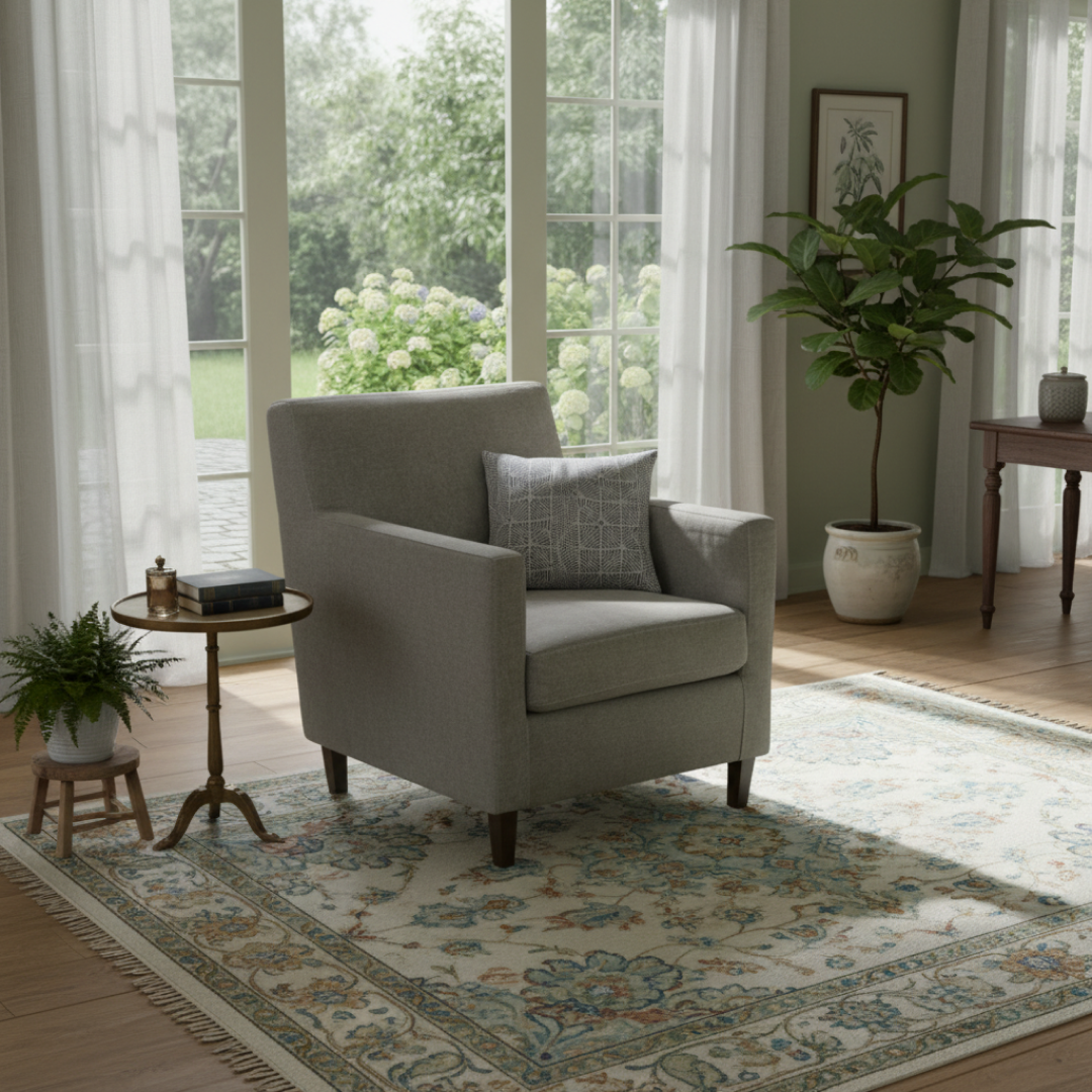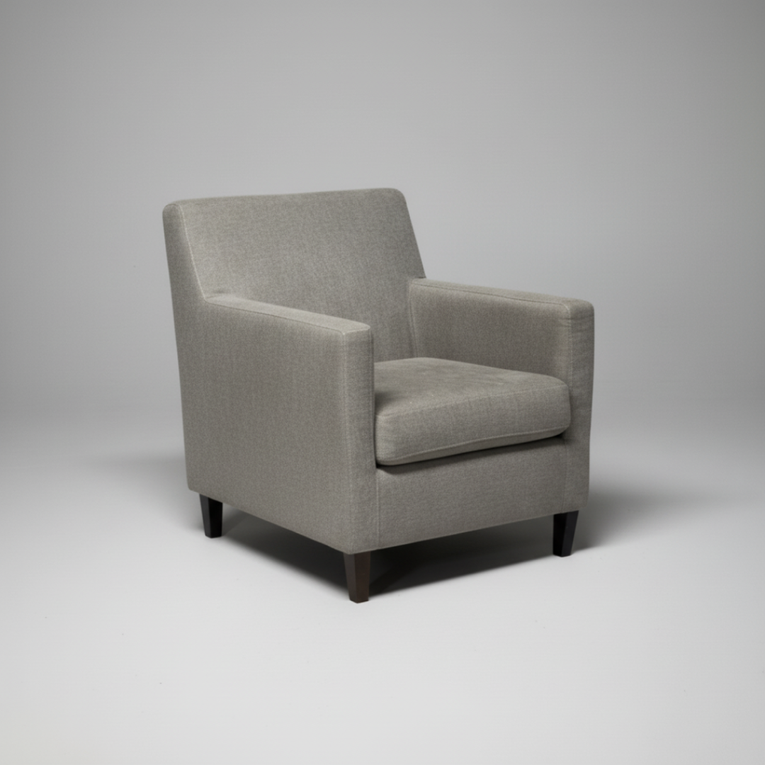 Esta poltrona é o equilíbrio perfeito entre conforto e sobriedade. O revestimento em microfibra de toque aveludado, num tom cinza neutro, oferece uma sensação acolhedora e é altamente resistente ao uso diário. Com um design de linhas direitas e pés de madeira escura, é a escolha ideal para salas de estar modernas, áreas de espera ou escritórios que privilegiam um visual clean e profissional.