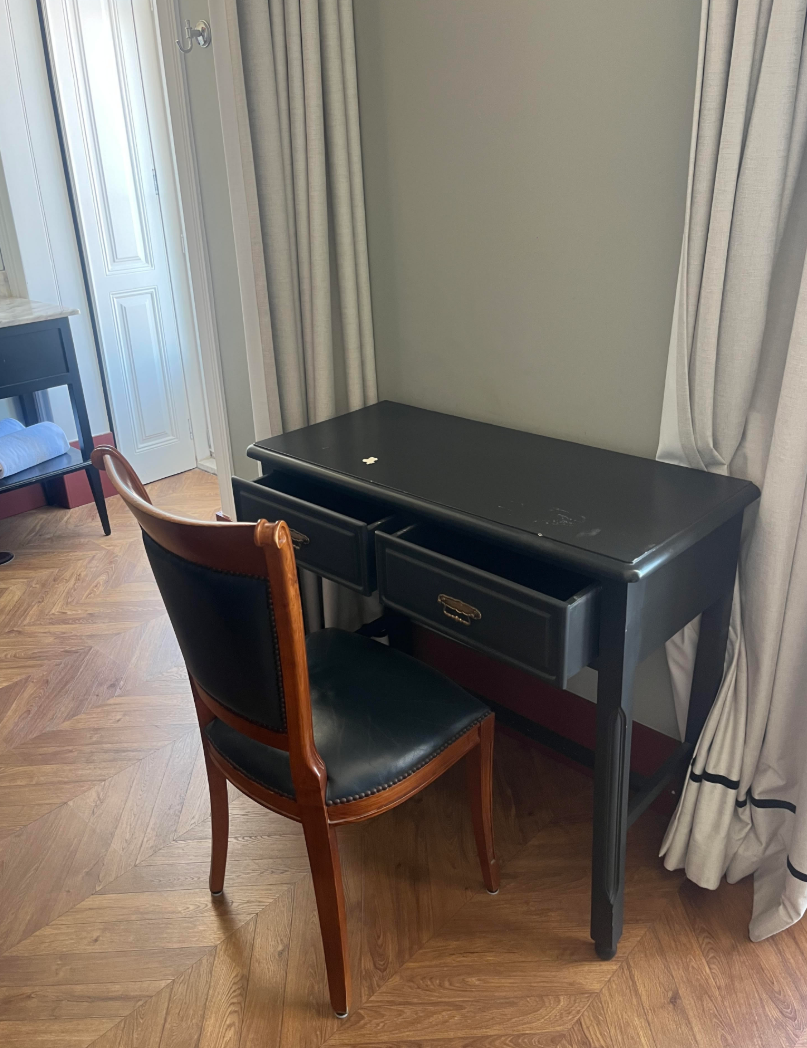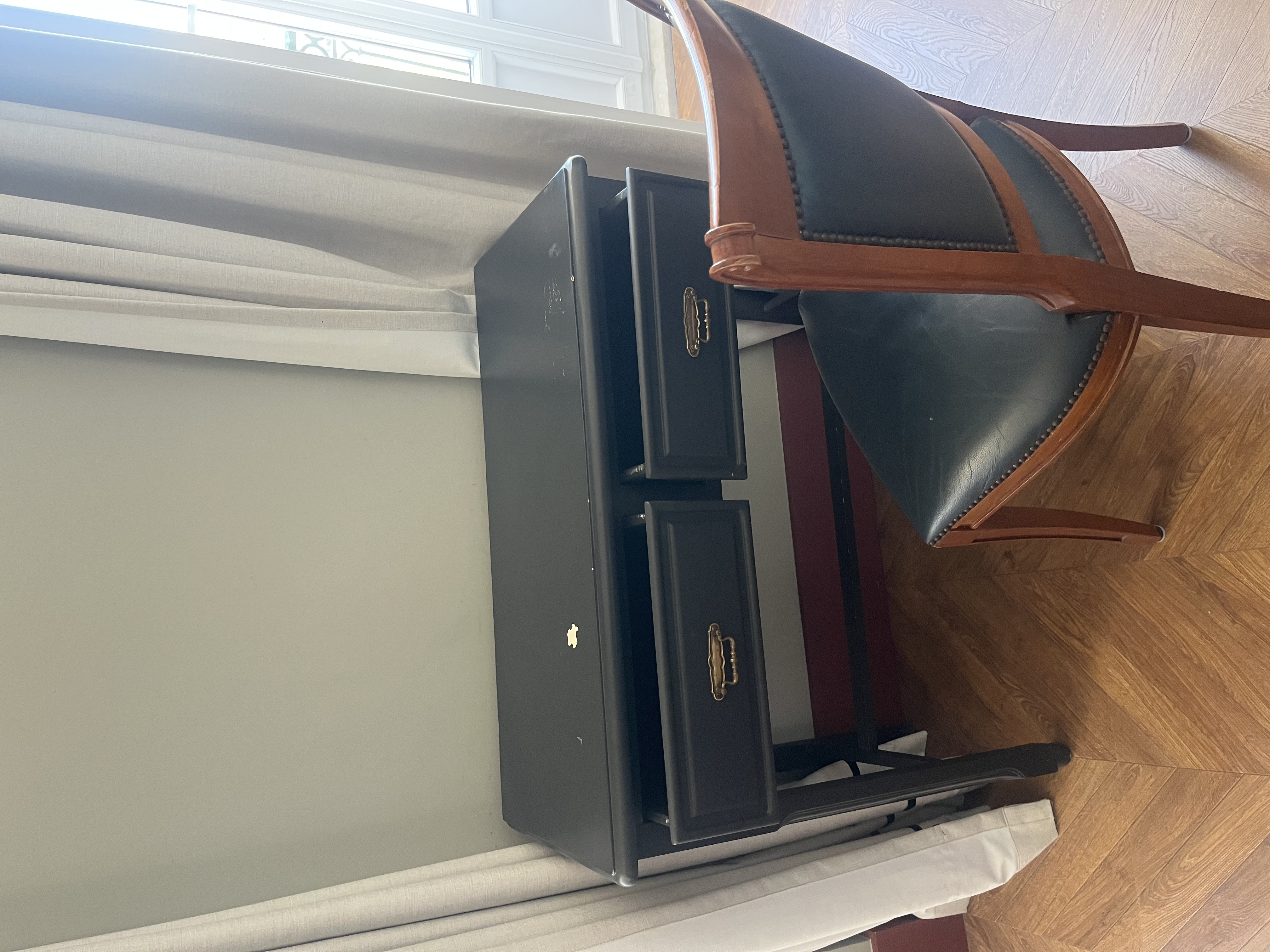 Acabamento preto, linhas simples e modernas, com gavetas frontais.