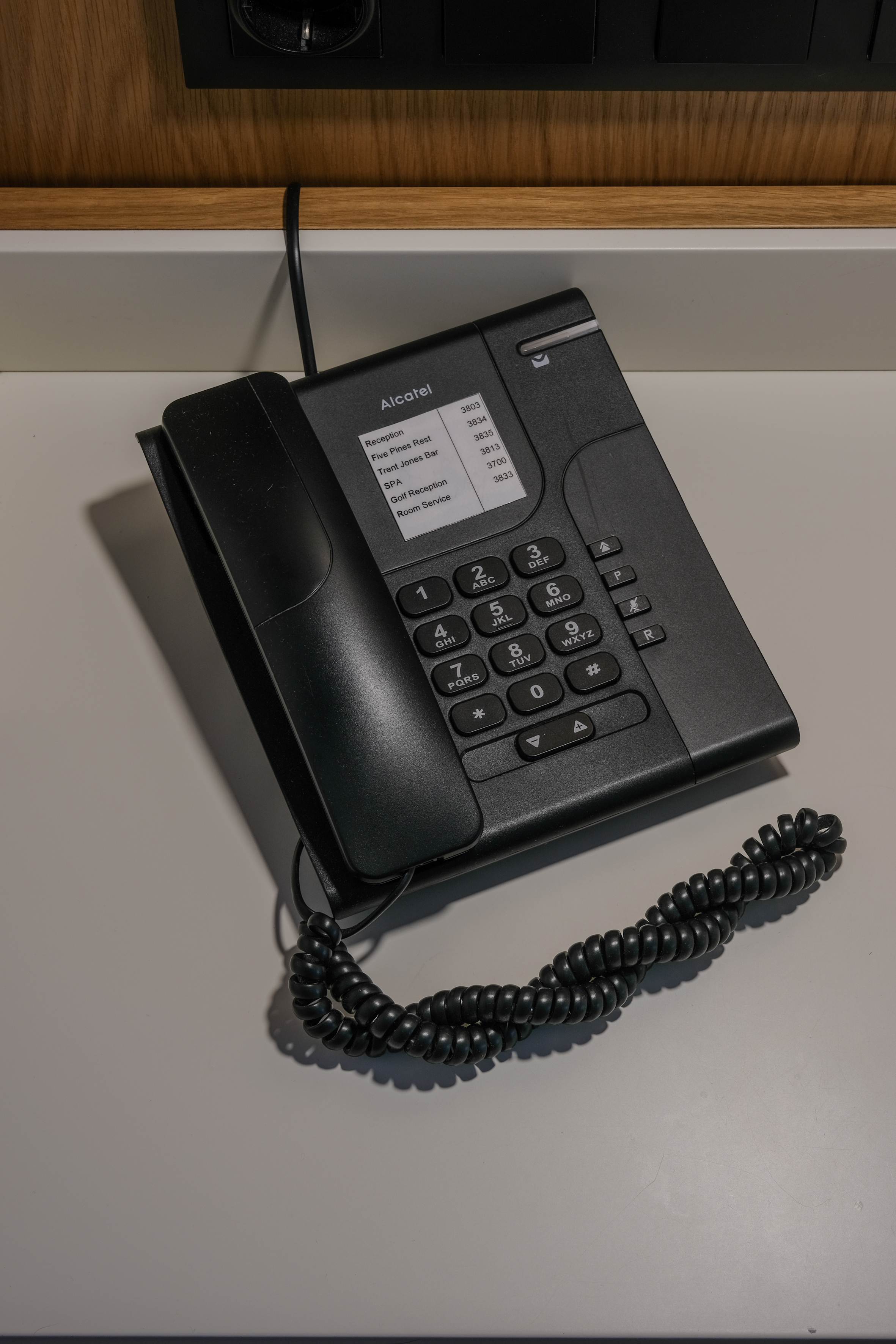 Telefone de mesa ideal para uso em quartos de hotel, escritórios, empresas ou uso doméstico