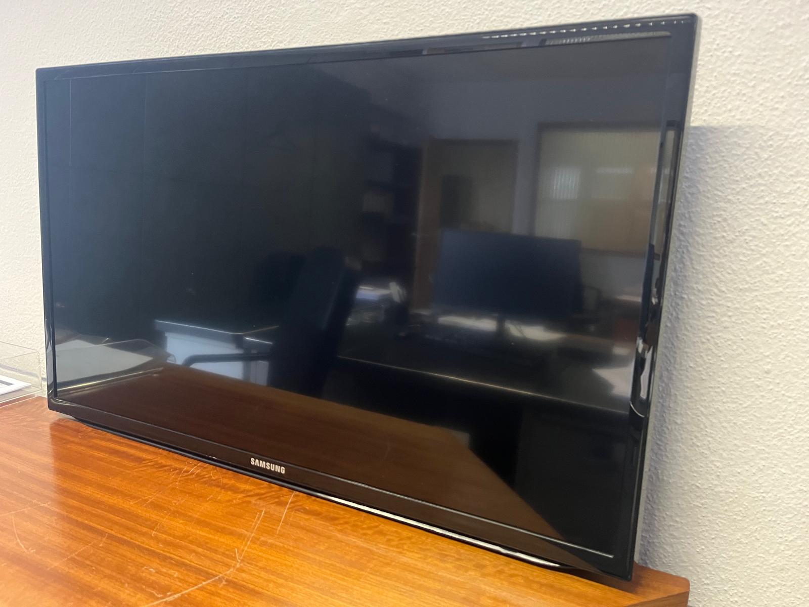 Televisão Samsung de ecrã plano com 32 polegadas, ideal para quartos de hotel, alojamentos locais ou uso doméstico. Equipada com função Smart TV, permite acesso a aplicações de streaming e conteúdos online.
