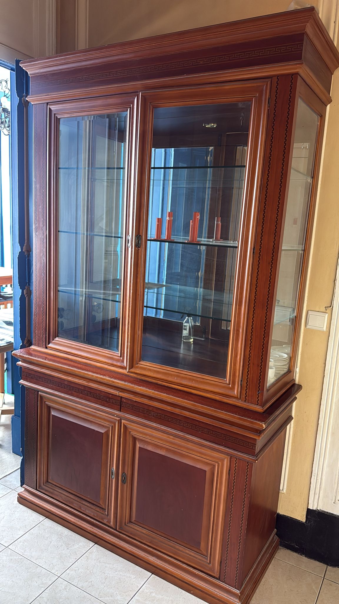 Esta vitrine de madeira combina um design refinado com funcionalidades práticas. Ideal para exibir coleções, utensílios de jantar ou artigos decorativos, possui prateleiras de vidro que proporcionam visibilidade e destaque aos itens. A estrutura robusta em madeira confere durabilidade, enquanto os acabamentos detalhados acrescentam um toque de sofisticação. Perfeita para qualquer ambiente, a vitrine oferece tanto estilo quanto praticidade.